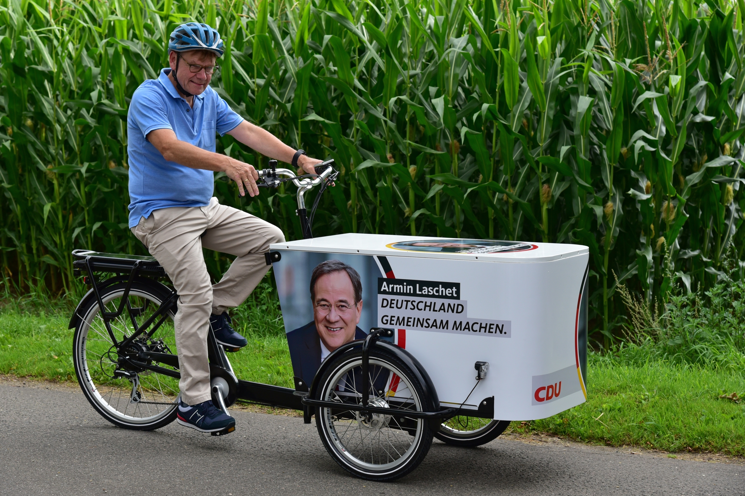 Am vergangenen Sonntag (15.08.21) erlebten in Flintbek auf Hof Stegelmann im "Himmelreich" mehr als 60 Besucherinnen und Besucher eine echte Premiere! Zur Überraschung aller kam Herr Dr. Wadephul (unser CDU Bundestagsabgeordneter im Kreis Rendsburg -Eckernförde) auf dem Prototyp "Lastenfahrrad als Werbeträger" aus Molfsee angeradelt (mehr als 7 KM). Und er hatte dann bei wunderschönem Sommerwetter viel Zeit, um die Gäste auf die Bundestagswahl einzustimmen und die vielen Fragen der Besucher zu beantworten. Unterstützt wurde er dabei von unserem Landtagsabgeordneten Hauke Göttsch und unserem Vertreter im Kreistag Holger Gränert.