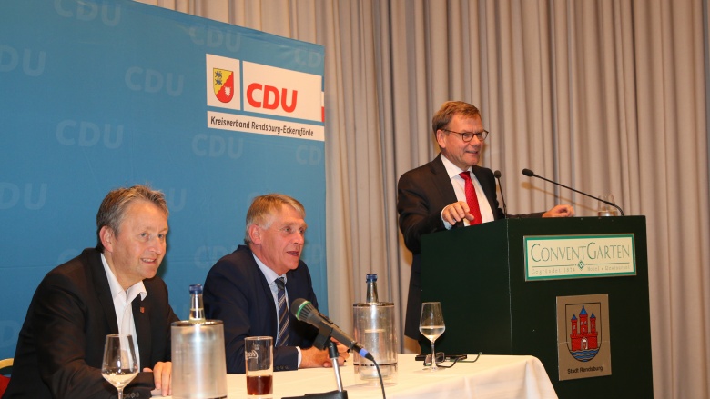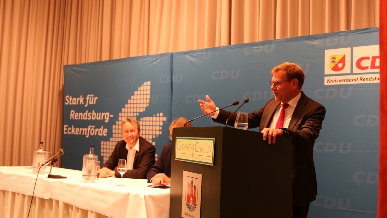 Einen Tag nach der Bundestagswahl fand im Rendsburger ConventGarten die Wahlnachlese der CDU Rendsburg-Eckernförde statt. Dabei sprach der Kreisvorsitzende Dr. Johann Wadephul, MdB, den anwesenden Gästen seinen Dank für ihre Mithilfe im Wahlkampf aus: „Ob beim Tür-zu-Tür-Wahlkampf, bei Ständen der CDU auf der Norla oder auf dem Rendsburger Herbst oder beim Plakatieren – die Mitglieder der Ortsverbände haben einen außerordentlich guten und engagierten Wahlkampf für mich gemacht, wofür ich mich herzlich bei Ihnen und Euch bedanken möchte.“ Besonders positiv stimmte Wadephul, dass die CDU erstmals in der Geschichte des Kreisverbandes bei einer Bundestagswahl in allen Kommunen, auch in traditionellen SPD-Hochburgen, die Mehrheit der abgegebenen gültigen Erststimmen holen konnte. „Daher können wir als Kreisverband zu Recht von einem historisch guten Ergebnis sprechen, das in erster Linie das Verdienst unserer freiwilligen und hauptamtlichen Helferinnen und Helfer ist.“